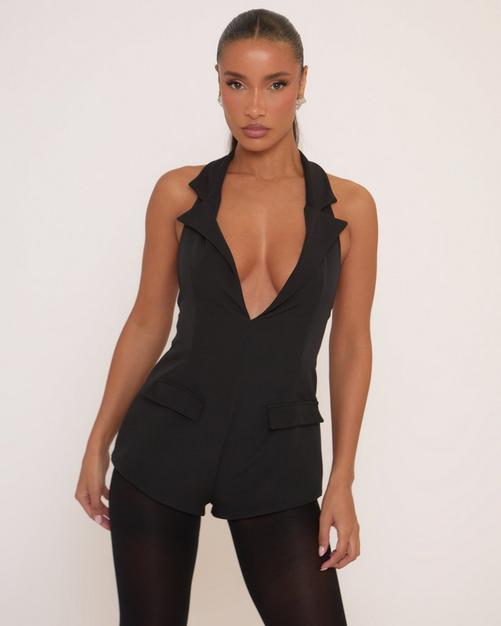 2. Halterneck Cut Out Knot Detail Bodysuit In Black